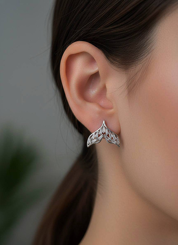 گوشواره طرح دم وال/ آبکاری نقره و فوق العاده براق/ کیفیت عالی/ ضد حساسیت