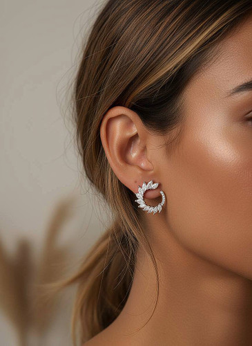 گوشواره مینیمال نیم دایره برگ سیلور