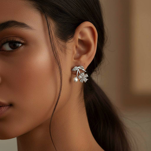 گوشواره مینیمال مرواریدی سیلور طرح گیلاس