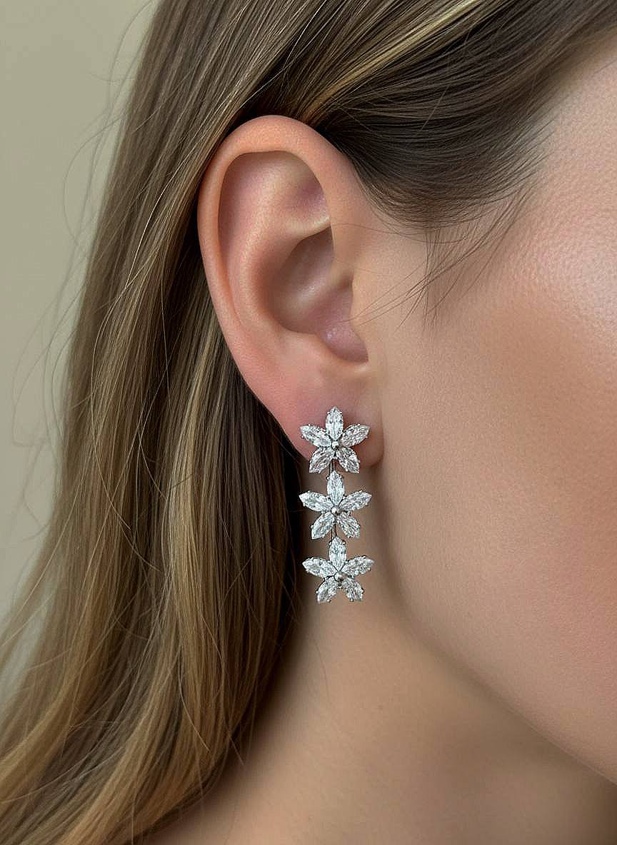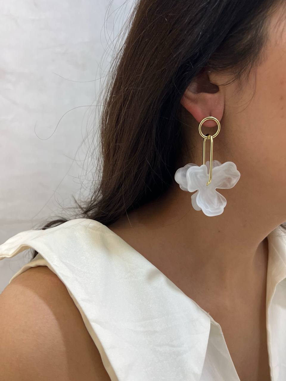 گوشواره آویز گل سفید