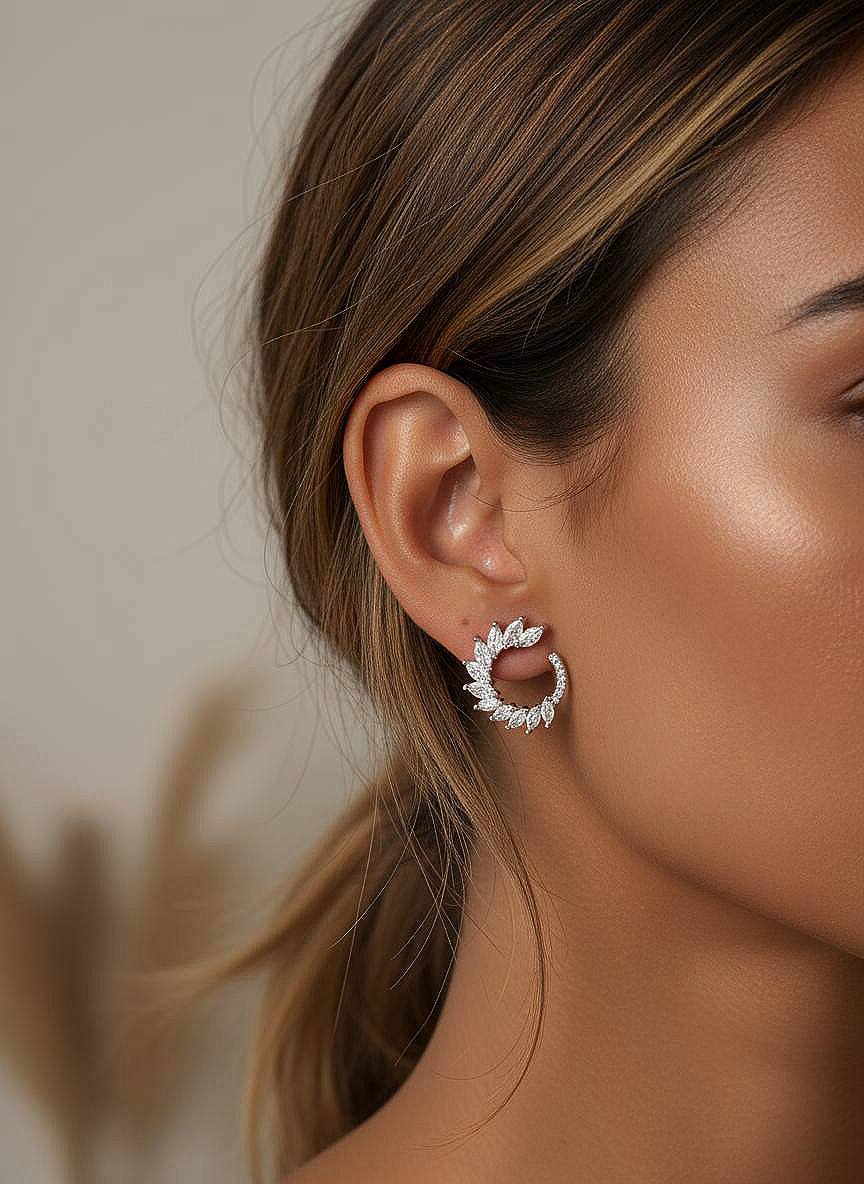 گوشواره مینیمال نیم دایره برگ سیلور